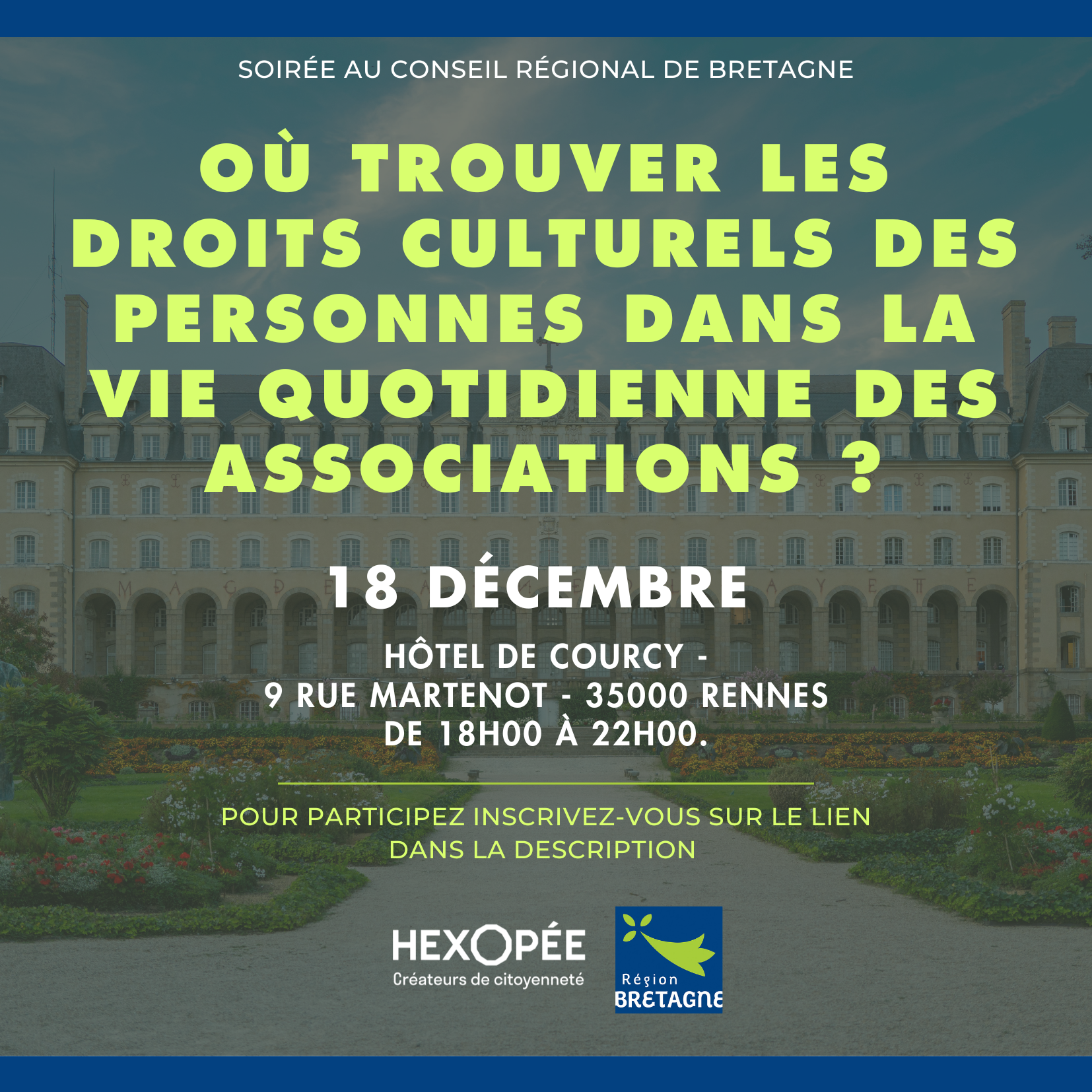 La délégation Bretagne d’Hexopée vous invite à sa soirée conviviale de fin d’année le 18 décembre 2025, un moment pour se retrouver, échanger et réfléchir ensemble à la place des droits culturels dans la vie quotidienne des associations.